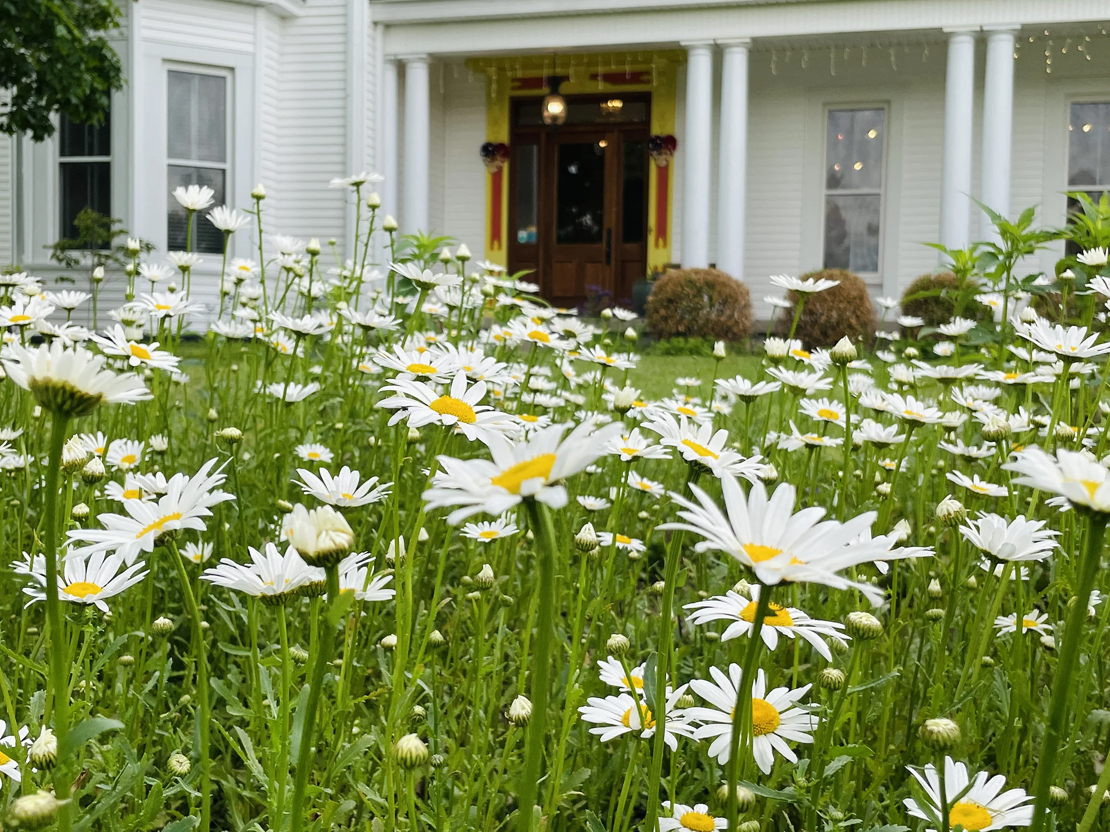 Our Giant Sunflower room is the largest room located on the 2nd floor. It overlooks the original formal entry of the home. A grand sugar maple over 150 years old greets you as you look to the north. This bright room offers a comfy couch, a reading chair, and a king-sized bed with luxurious organic cotton sheets. The private hall bathroom with a large tub and shower is just outside your room. The bathroom is shared with the Wild Rose when both rooms are booked together. A delicious breakfast awaits when you decide to rise and shine.
