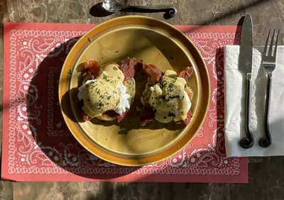 The Wild Rose Room is Western-themed, with original art and a lovely view of our historic sugar maple tree. A George Hurrell original photograph of the iconic Jane Russell from the 1943 classic, The Outlaw, hangs above the fireplace. Through the north-facing windows, you overlook the pool with our small pond beyond. Watch glowing sunsets from your western bedroom window. The large hall bathroom is shared with the Giant Sunflower room when both rooms are booked together. Organic cotton sheets await you in a comfy queen-sized bed.